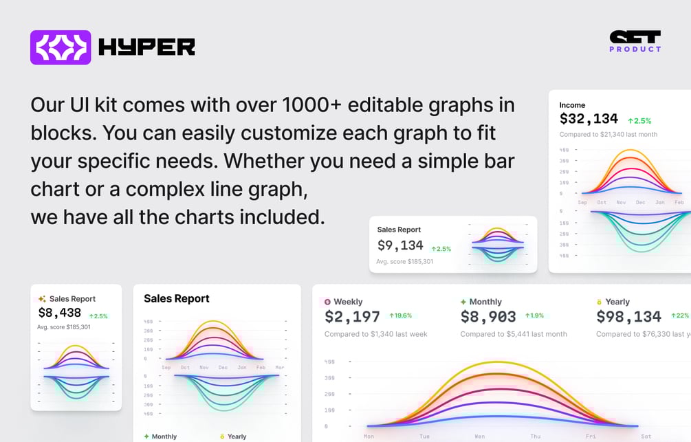 Hyper Charts includes over 1000 of editable graphs in blocks, making it easy to create stunning and professional-looking visualizations for any project. The graphs are fully customizable, so you can change the colors, fonts, and styles to match your brand or project theme. The kit also includes a variety of chart types, so you can find the ideal graph to match your data.