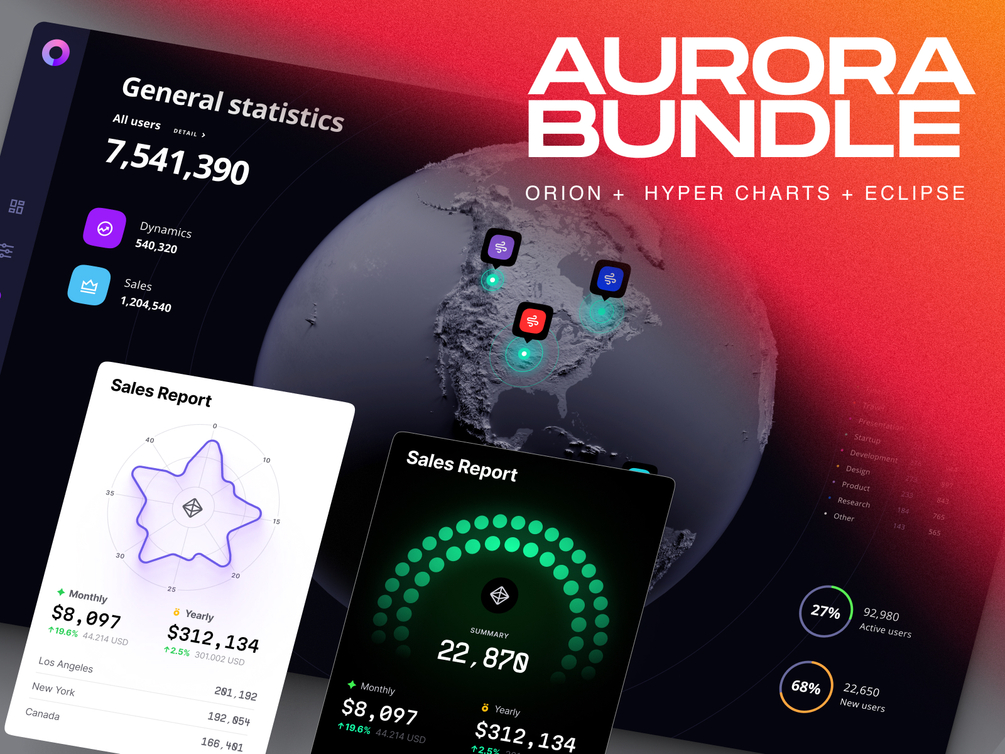 Orion UI kit - is a Figma library with 50+ full-width charts templates served in light & dark themes. Contains 200+ of dataviz widgets that look perfect on desktop & mobile screens. Organized as a design system for Figma and supported with 2500+ components based on auto-layout.